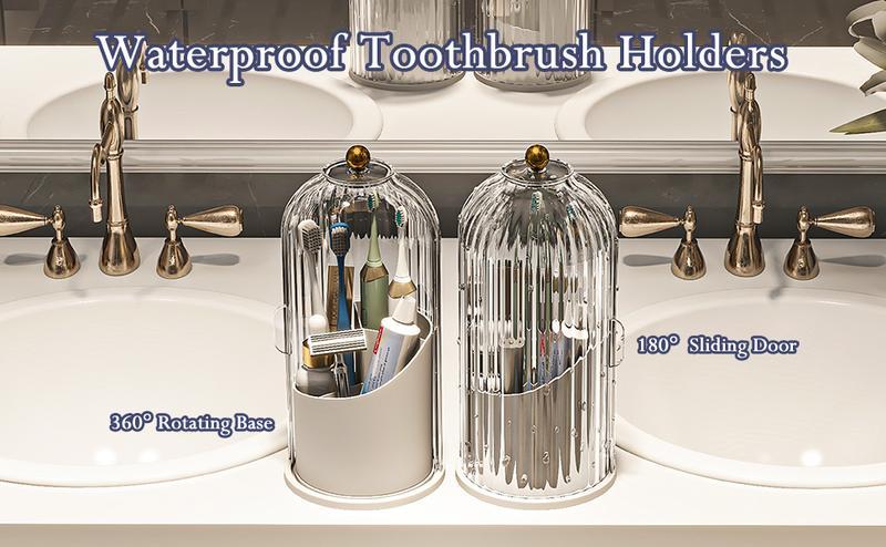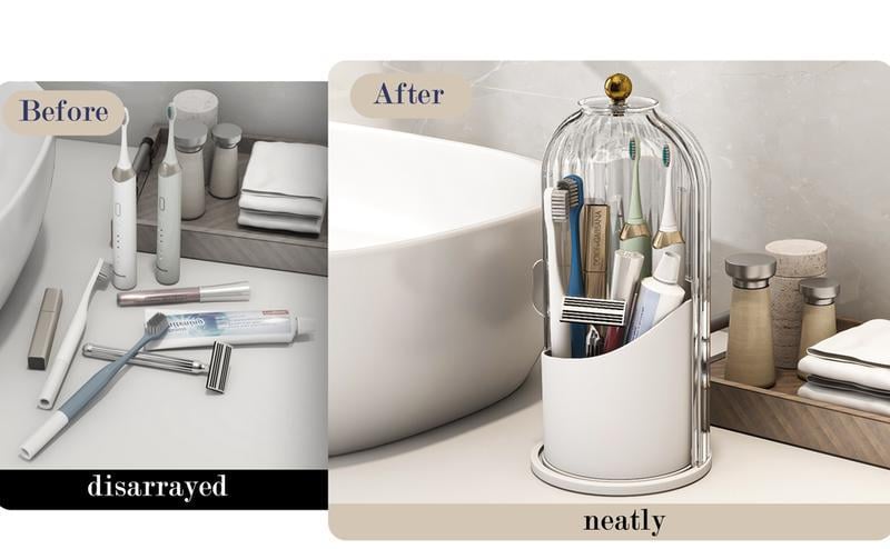 Bring order and elegance to your bathroom or vanity with this Dustproof Rotating Toothbrush Holder — a multifunctional organizer designed to keep your essentials clean, accessible, and beautifully displayed.