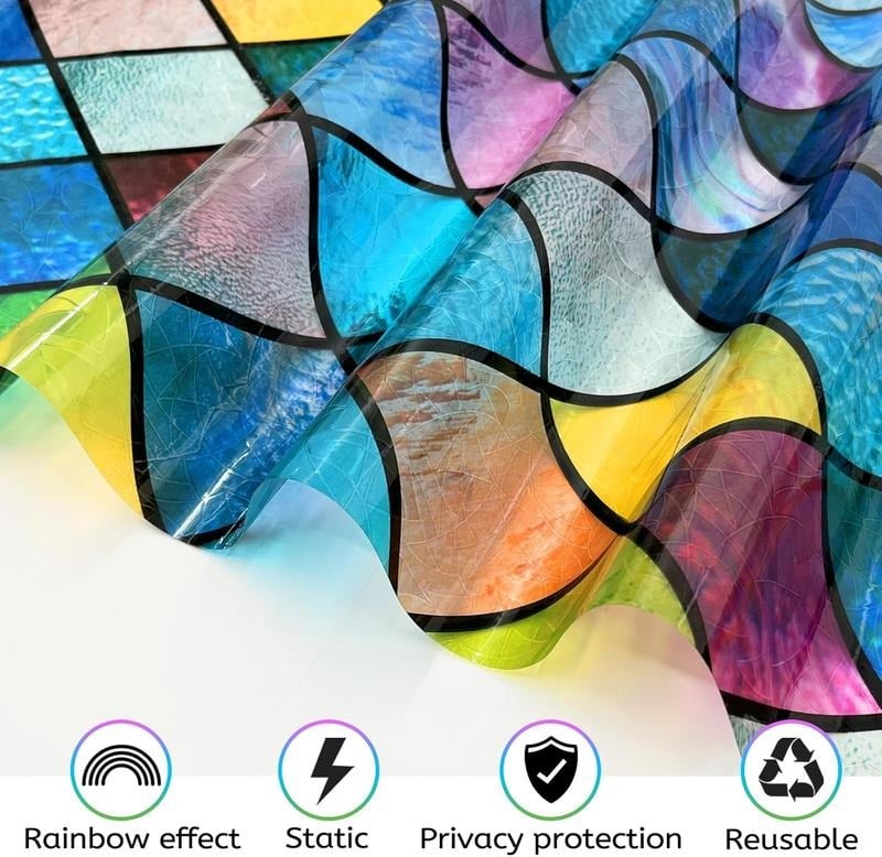 - Privacy + Beauty: Designed to look like stained glass, this film enhances privacy without glue or residue.